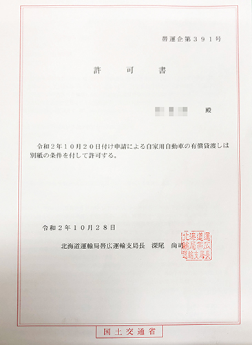 北海道運輸局帯広運輸支局に届け出を出しておりますので安心してご依頼ください。