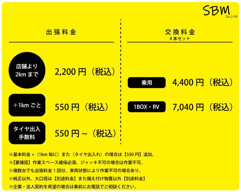 ※物置からタイヤの出入れは別途550円~(※保管場所によって別途費用)