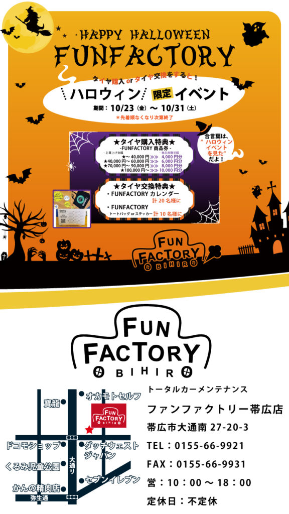今回はタイヤ購入orタイヤ交換をどちらかを当店でご利用して頂くと、もれなく先着順でFUNFACTORYから特典をプレゼントさせて頂きます!