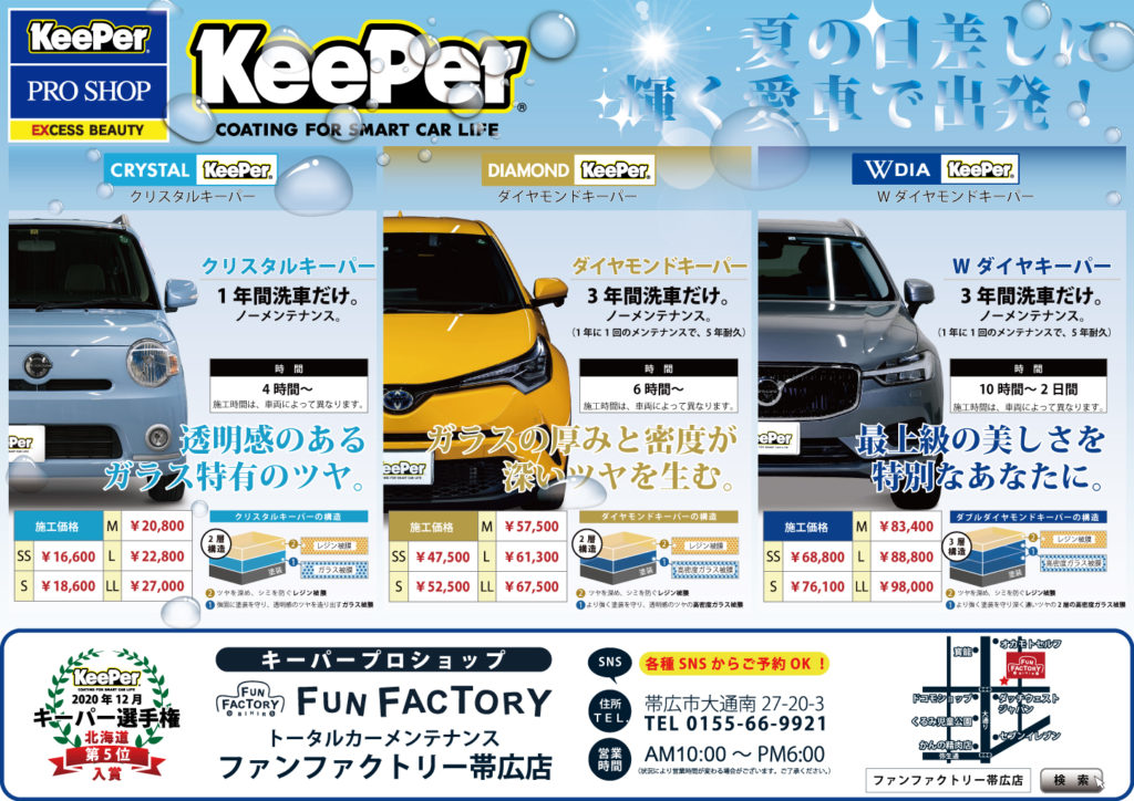 EXキーパープロショップでファンファクトリー帯広店のコーティング技術をぜひご体感ください!もちろん車両整備等もお気軽にご相談ください。