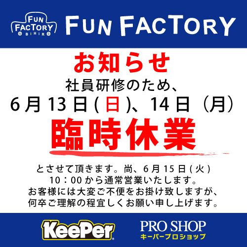 いつもファンファクトリー帯広店のWEBをご覧いただき、ありがとうございます。当店は、下記の日程で、臨時休業とさせていただきます。お客様にはご不便とご迷惑をお掛けいたしますが、ご理解の程、よろしくお願い申し上げます。休業は下記の通りです。