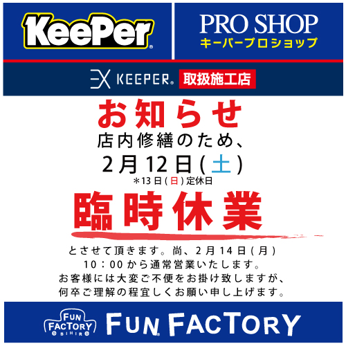 ファンファクトリー帯広店の営業ですが「店内修繕」のため、