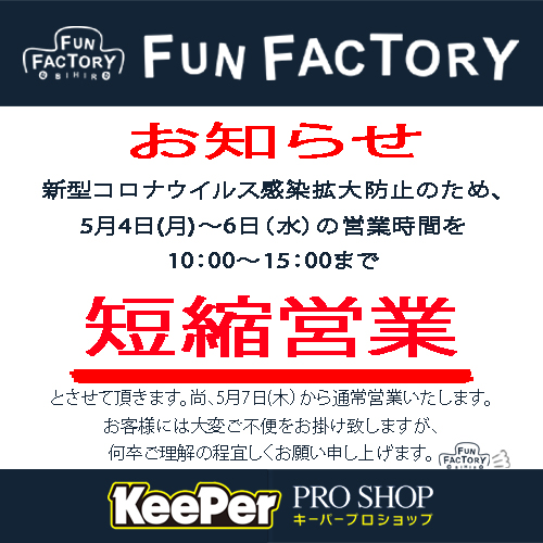 ファンファクトリー帯広店の営業時間ですが、GW期間中の5月4日(月)~6日(水)を誠に勝手ではございますが、短縮営業とさせて頂きます。