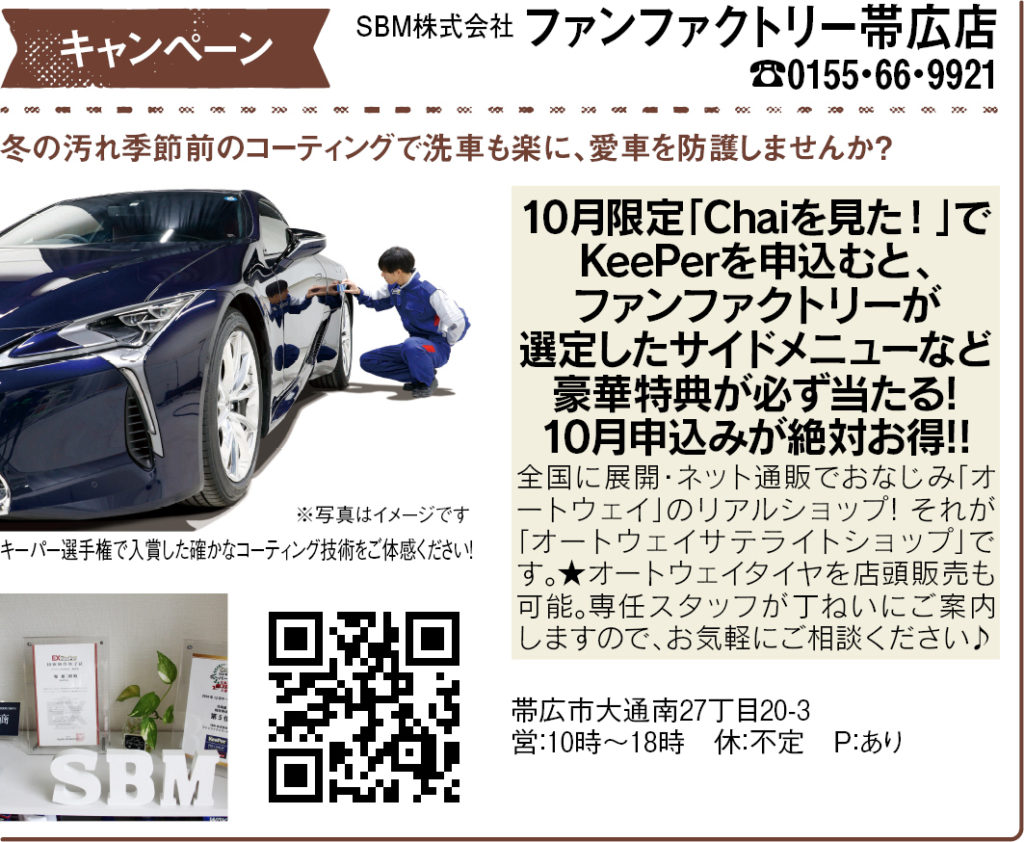 また、十勝の生活情報メディア「Chai」10月号に掲載しています。