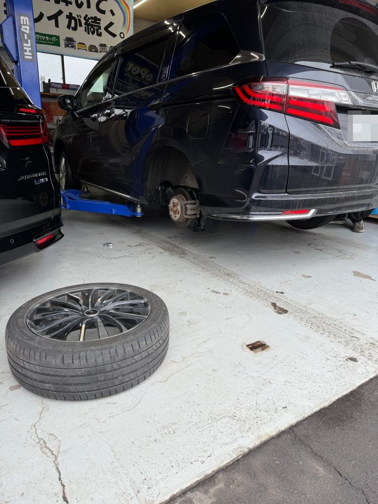 今回は当店で預かりでタイヤ交換の脱着で承りました。